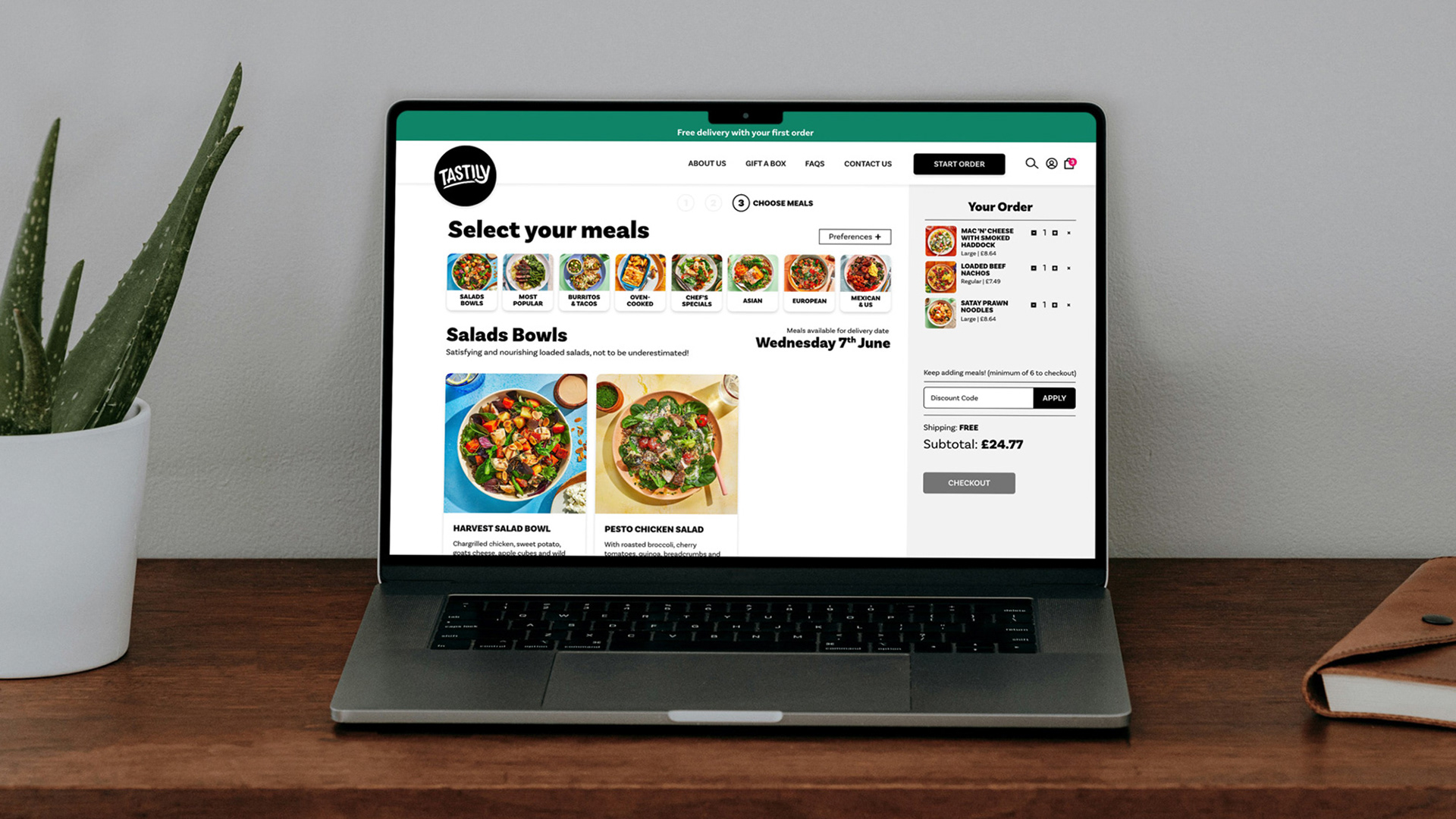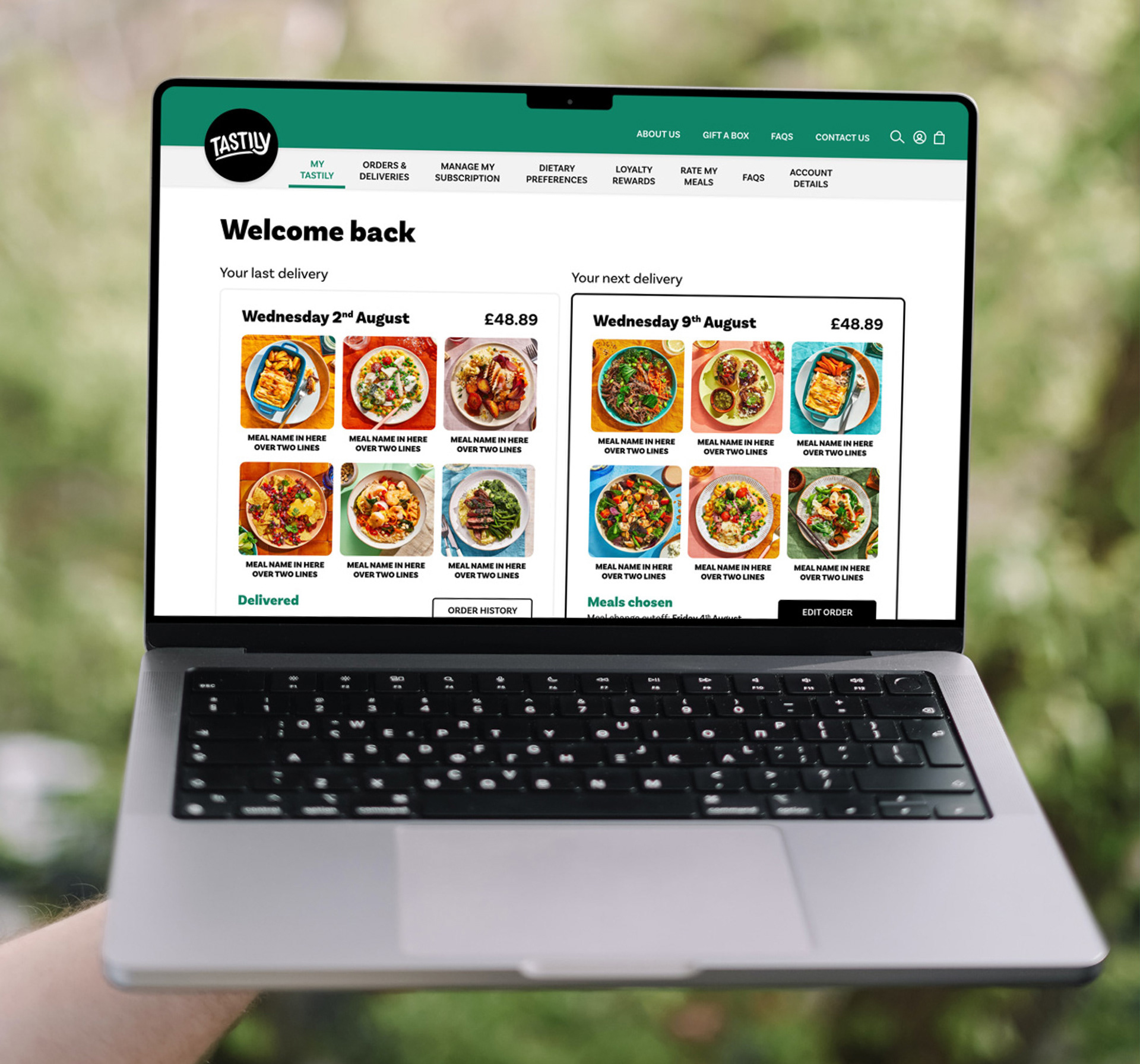 Tastily, a meal subscription service that prides itself on supplying fresh and nutritious chef made meals, was struggling with an out of date website that no longer reflected the customer experience they deliver. The brand had recently undergone a major redesign of their packaging and were looking to develop this same look and feel across more of their customer touchpoints, while improving the customer journey and increasing retention rates.